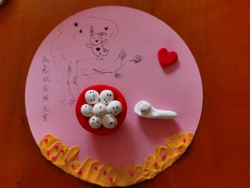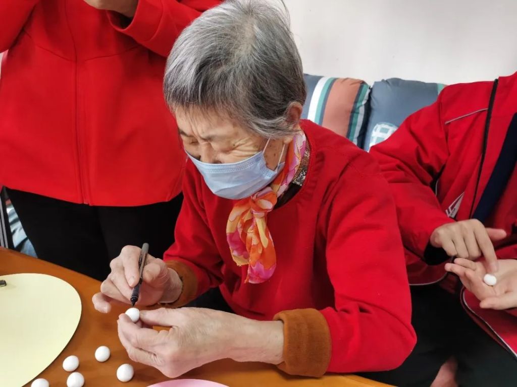 社工分步骤将制作流程教授给服务对象,每一个参与其中的服务对象都认真的听着社工的讲解,看着社工的示范。不论是一双双巧手还是略显笨拙和颤抖的手,不论是耳聪目明的服务对象还是耳背到几乎什么也听不见的耄耋老人,所有人的脸上都洋溢着微笑和兴奋,所有人都很高兴地将一快快黏土橡皮泥团成所需要制作的原材料。大家随着社工的讲解,又将一个一个原材料组合起来,制作出一碗碗形象逼真、软萌可爱的小汤圆。写祝福、画玉兔、描月亮……妙笔勾勒出一幅幅饱含祝福的作品。