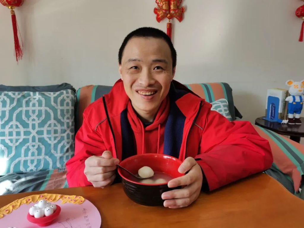 元宵节吃汤圆,寓意团团圆圆。小组活动结束后,护理员们挨门逐户将一碗碗热腾腾的汤圆送到服务对象房间里。吃着软糯香甜的汤圆,成年孤儿大宝乐得合不拢嘴。