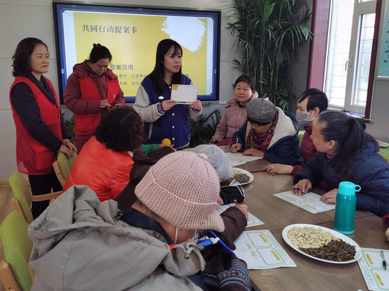 “96街坊说”,提案共同行动。在社工的引导下,大家积极发表意见,根据提出的服务需求,分享了关于开展社区服务和邻里生活的观点和建议。大家就组织怎样丰富多彩的社区活动,如何增进邻里之间的交流与合作等议题展开了热烈的讨论。“你想要在社区发起有利于老年人健康生活的行动吗?”“为什么想要发起这些行动?”......社工抛出一系列的问题,向参与成员发放提案卡片,具有不同身份的居民将来自于社区生活的真实感受与独道见解形成相应的提案并阐述着自己的解决方案与美好畅想。大家共商共议、纷纷建言献策,社工从而整理出本次参与代表想要发起的共同行动,以及对社区发展的期许。