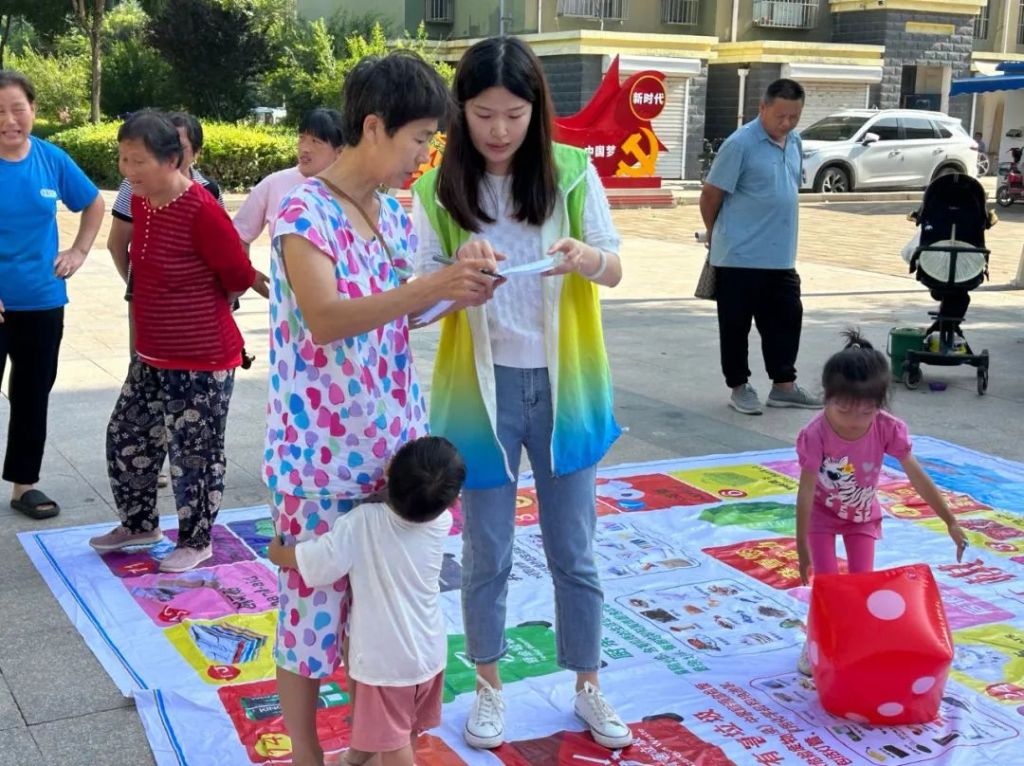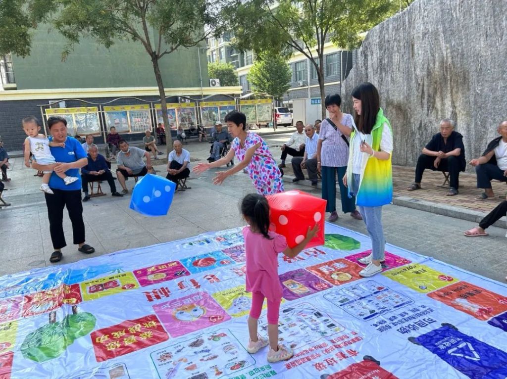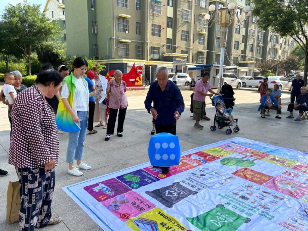 为建设文明社区、绿色社区,真正落实资源节约型和环境友好型社会的要求,7月6日,济南新旧动能转换起步区崔寨街道社会工作服务站(以下简称“崔寨街道社工站”)开展“共绘蔚蓝”社区垃圾分类趣味知识运动会,通过丰富有趣的飞行棋闯关游戏向居民朋友们普及垃圾分类硬核知识,使居民们对厨余垃圾、其他垃圾、有害垃圾、可回收物有更清晰的认识,提高垃圾分类意识,并落实到日常生活中。
