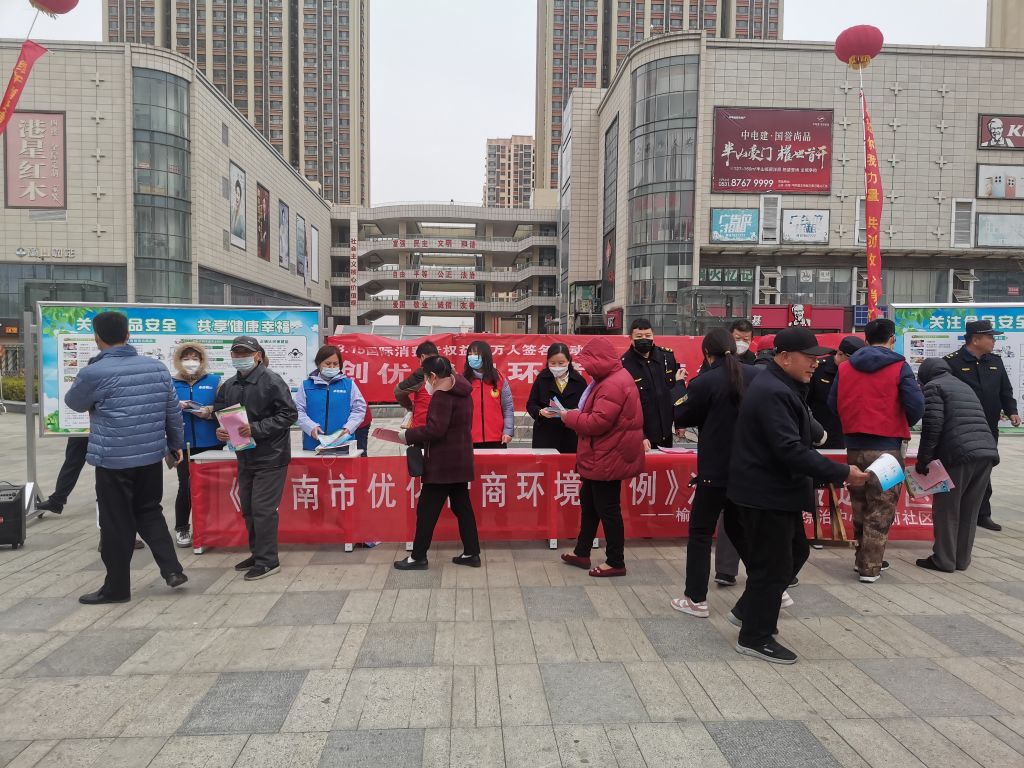 为给辖区居民们创造一个诚信和谐、安全放心的消费环境,增强广大居民的维权观念,3月15日上午,榆山社工站联合榆山街道社区社会组织联合会在银座玫瑰广场同府前社开展了以“普法知识进社区,共护消费者权益”为主题的普法宣传活动。活动邀请到平阴县市场监管局、榆山街道司法所、综治办、城管执法中队、东营银行等部门。