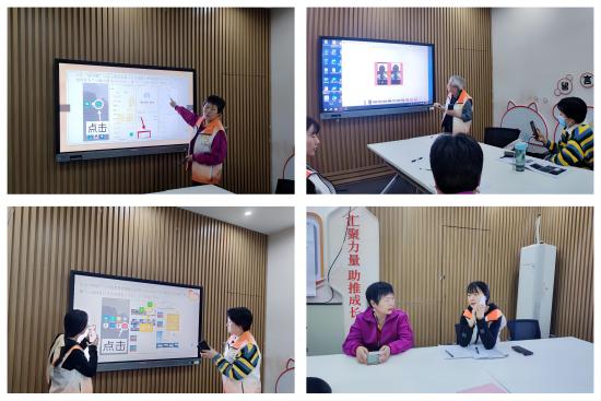 “什么时候开课”“报名海报设计的如何”“教学内容如何更加丰富”……在宫集芳阿姨的引导下,组织成员展开了热火朝天的讨论,对宣传海报,开课时间、地点以及组织的团建活动等相关事宜进行了商讨,并积极表达了自己的想法和意见,认为应该结合往届学员的意见把升级教学内容,增加外卖、淘宝等软件的学习。商榷后,骨干宫集芳带领大家再次梳理了课堂流程与讲课内容,并组织每位组织成员进行试讲。同时又借此机会,社工站向阿姨们介绍了诚+公益银行积分规则,鼓励大家多多参与志愿服务活动。