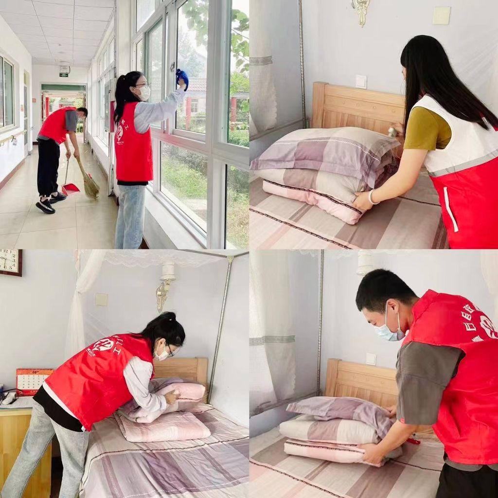 一早,社工们来到了敬老院,随手拿起扫帚便开始打扫房间、整理庭院环境,干得热火朝天,社工始终以“助人自助”为宗旨,帮助院内老人改变居住环境,激发生活热情,与老人们谈谈家常,不一会儿,就把敬老院收拾的干干净净,老人们露出了欣慰地笑容。李奶奶握着社工小李的手亲切的说:“今天真的很高兴,孩子们辛苦了”。我们笑了,孩子们也笑了。阵阵欢声笑语给这个浪漫“七夕”增添了些许温暖。