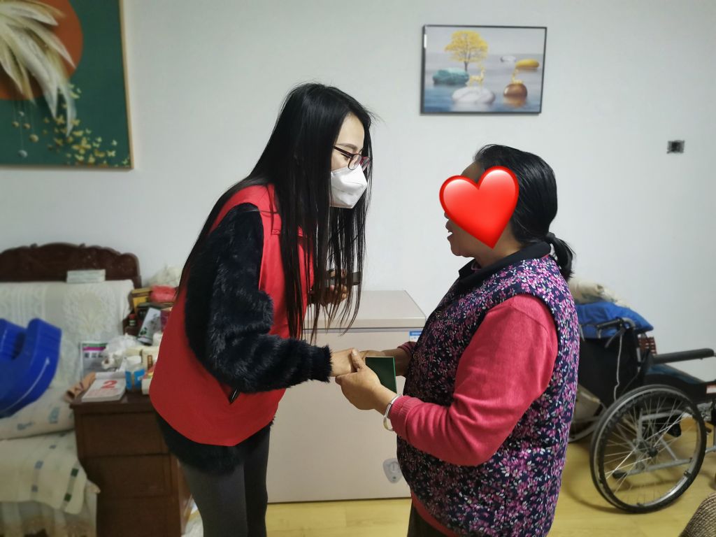 “阿姨,叔叔的残疾证办下来了,我们给您送过来了。”李阿姨热情的打开门,笑容难掩心中喜悦,“哎呀,你们来啦!快进来、快进来...”,“阿姨,上次听您说给叔叔翻身困难,我们给您带来了翻身神器”,社工一边给阿姨看具体操作方法一边讲解。阿姨拉着社工的手一遍遍说着感谢。在社工询问阿姨目前的生活现状时,阿姨开启了“话匣子”,社工耐心倾听每个细节,并及时给予回应。在阿姨的言谈举止中,能明显的感受到阿姨的变化,之前的负面情绪、焦虑情感现在基本不复存在,整个人乐观向上,还向我们提出现在照顾老伴之余做点儿有意义的事儿,想加入助残志愿服务队,帮助更需要帮助的人,这不禁让我们感受到,“用生命影响生命”的意义。
