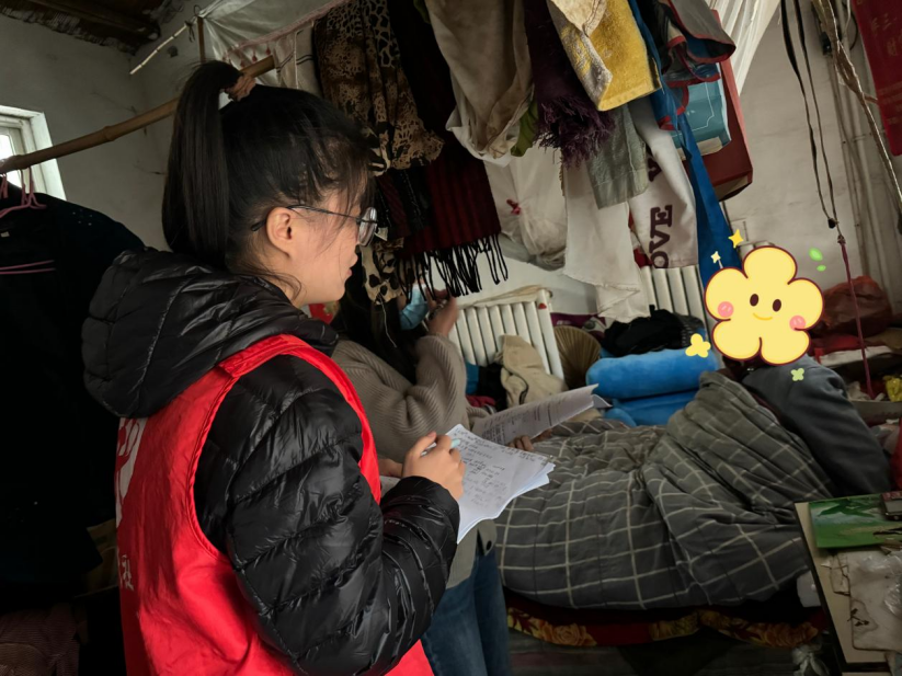 在去往老人家中的路上,村委负责人与社工讲述老人家庭情况,在老人家中,社工带着满腔的热情,与老人们亲切交谈,详细了解老人的身体状况和生活状况,社工运用倾听的技巧耐心听取老人们的诉说,询问他们的诉求,进行详细记录,以便后期有针对性地帮助老年人解决实际困难,并耐心地为老人讲述日常安全知识,叮嘱他们注意保暖,同时观察家中用火用电安全,排查安全隐患,为老人的居家安全保驾护航。