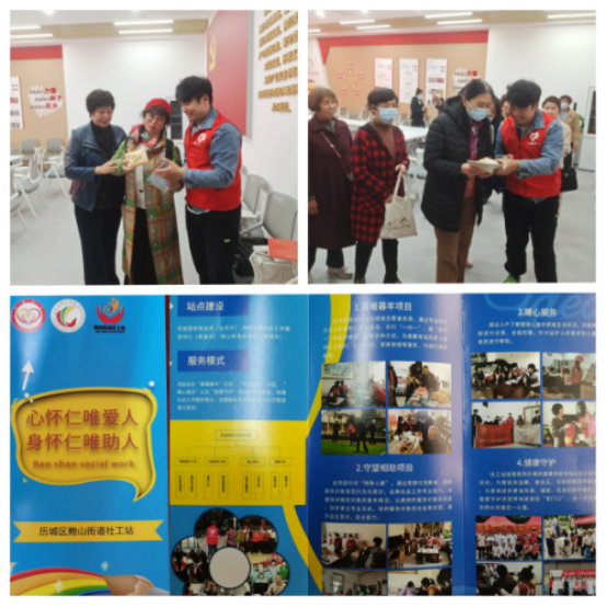 为了进一步增强老年人合理膳食意识,同时宣扬社会工作精神、强调社会工作者的角色,鲍山街道社工站在第17个世界社工日来临之际,通过“健康鲍山”品牌项目让社区居民认识社工、了解社工。