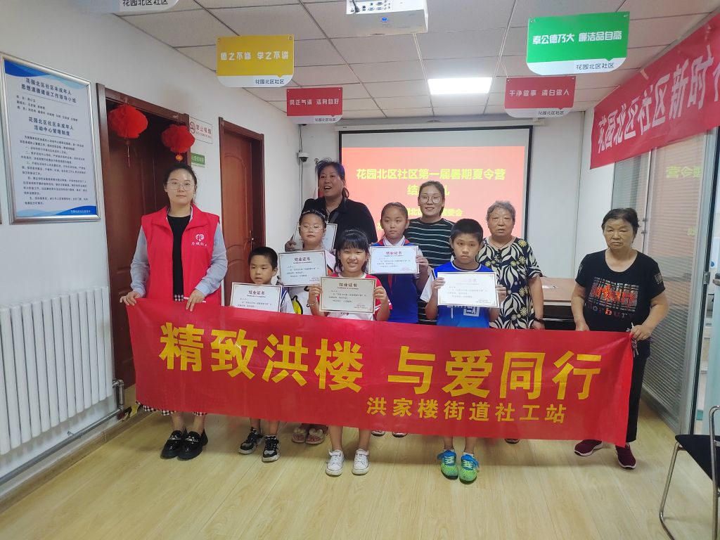 夏天是火热的、快乐的、快速的,时光匆匆而过,转眼儿童暑期夏令营已经到了尾声。洪家楼街道的社工们与花园北区社区的儿童们都依依不舍,希望时光可以停留在此。夏令营活动包括了手工创作、作业辅导、非遗传承等活动,每个孩子都收获满满,度过了一个有意义的假期。洪家楼街道社工站联合花园北区社区开展的“涵养童心 快乐一夏”暑期夏令活动,圆满结束。