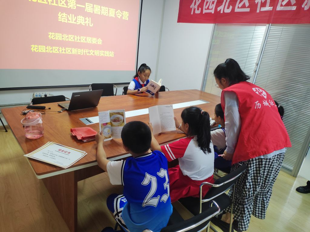 洪家楼街道社工站的社工们在结业典礼上为孩子们颁发了结业证书,为孩子们的暑期夏令营活动画上了圆满的句号。活动中,社工通过播放PPT,讲解了与社区孩子们相处的点滴,帮助大家回忆夏令营开展的活动,并通过图片的方式展示了孩子们在一段时间中的成长和收获,孩子们看到自己的假期成果,都感到了满满的成就与自豪。