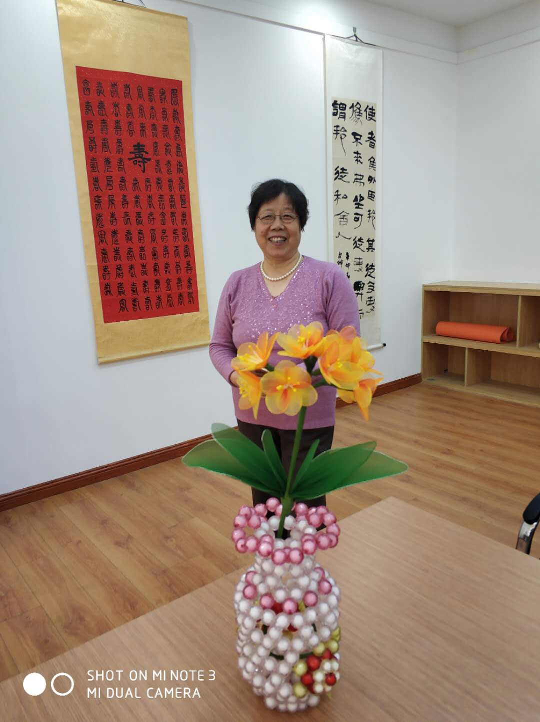 上午九点,大家齐聚在手工活动室,三三两两的拉着家常,社工与大家分享了手工义卖趣事。随后正式开始君子兰的制作。首先,社工向大家讲解君子兰制作的流程,所需材料,人员分工。然后分发制作材料,大家在前两次课的基础上,可以自行制作君子兰的花朵。一根根铁丝在阿姨的手里弯曲扭转变成了花的骨架,一条条彩色的丝网环绕纠缠变成美丽的花瓣,一朵朵美丽可爱的君子兰花朵雏形显现,阿姨们被它深深吸引,神情陶醉。大家互相分享着自己的花朵,交流制作经验与内心喜悦。随后进入第二阶段,由张阿姨、徐阿姨制作花叶,王阿姨负责花的整体造型,其他几位阿姨继续做君子兰花朵,补充花朵数量。不一会,君子兰就成功制作完成了,大家纷纷观赏拍照,对其赞叹不已,本次君子兰作品成功完成。