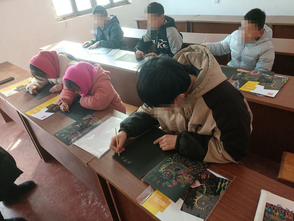 学习创作刮画,画我眼中多彩的世界。在社工的引导下孩子们手拿小小竹签笔,描绘中自己脑海中天马行空的景色,一笔一划间五彩童趣的化作逐渐展现出来,孩子们在表达丰富的色彩和视觉语言的同时,发展观察力和动手能力,体验艺术创造带来的乐趣。