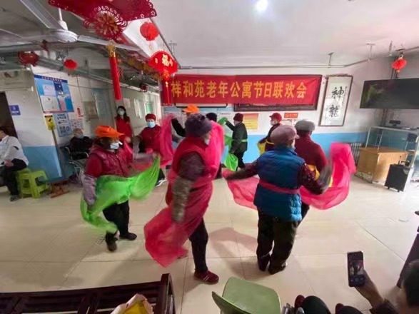 活动开始之前,社工向老人们介绍社工站,让老人们对社工站有进一步的了解,通过专业的访谈技巧,详细了解祥和苑老人近期心理状况和情绪压力,引导其解放压力,更好地融入到敬老院。随后,元宵喜乐会正式开始,老人们自导自演秧歌舞、歌伴舞、独唱、以及合唱等节目精彩纷呈,老人们脸上都笑开花,现场掌声不断,充满温馨欢乐的气氛。