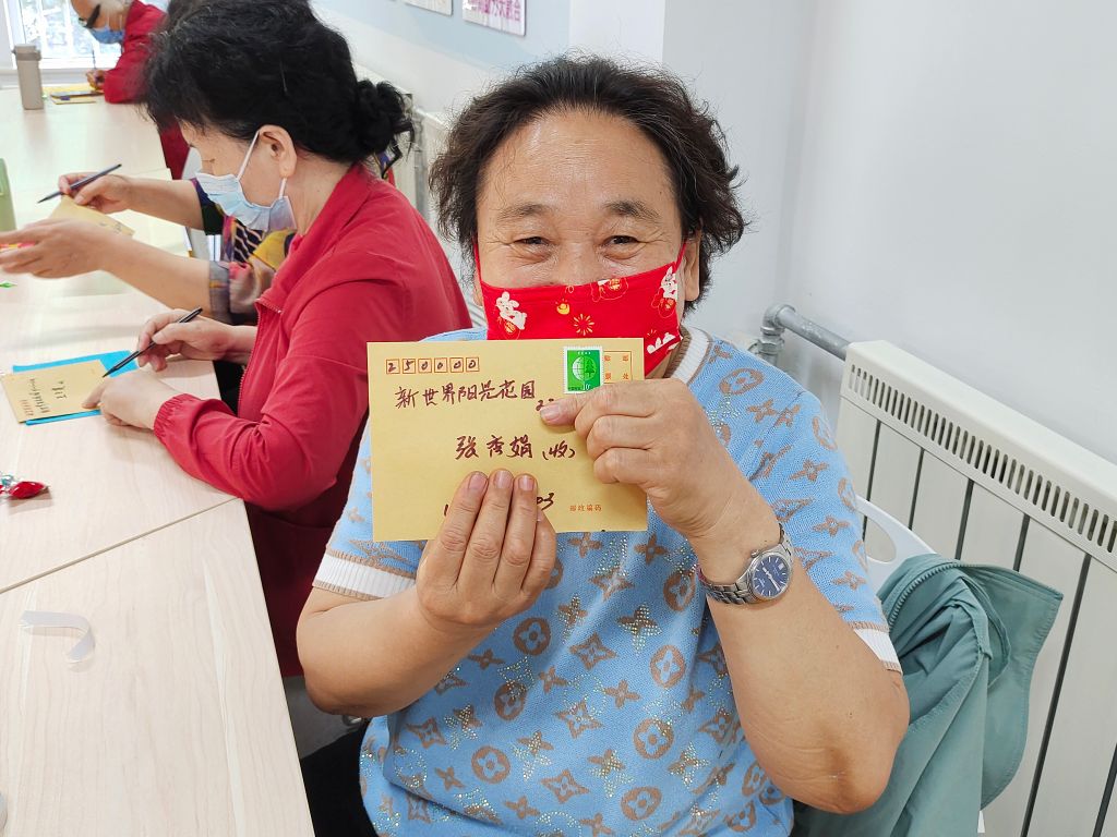 活动在“彩虹字大挑战”的小游戏中拉开帷幕,看似简单的小游戏锻炼了大朋友们的反应能力的同时也拉近了彼此间的距离,让大朋友们在游戏中“嗨”起来,成为一个快乐的“老小孩儿”。紧接着社工带领大朋友们一起回顾了自己以前的儿童节以及自己给孩子和孙子过儿童节的不同体验。同时,邀请大朋友们给明年的自己写一封信,表达对以往的回顾,对未来的期待,经历写信、填地址、贴邮票、封信封等过程后交由社工,约定明年“六一”再次相聚,再次重启,借助承载希望的时光信封,让自己重温旧时光,永葆童心。