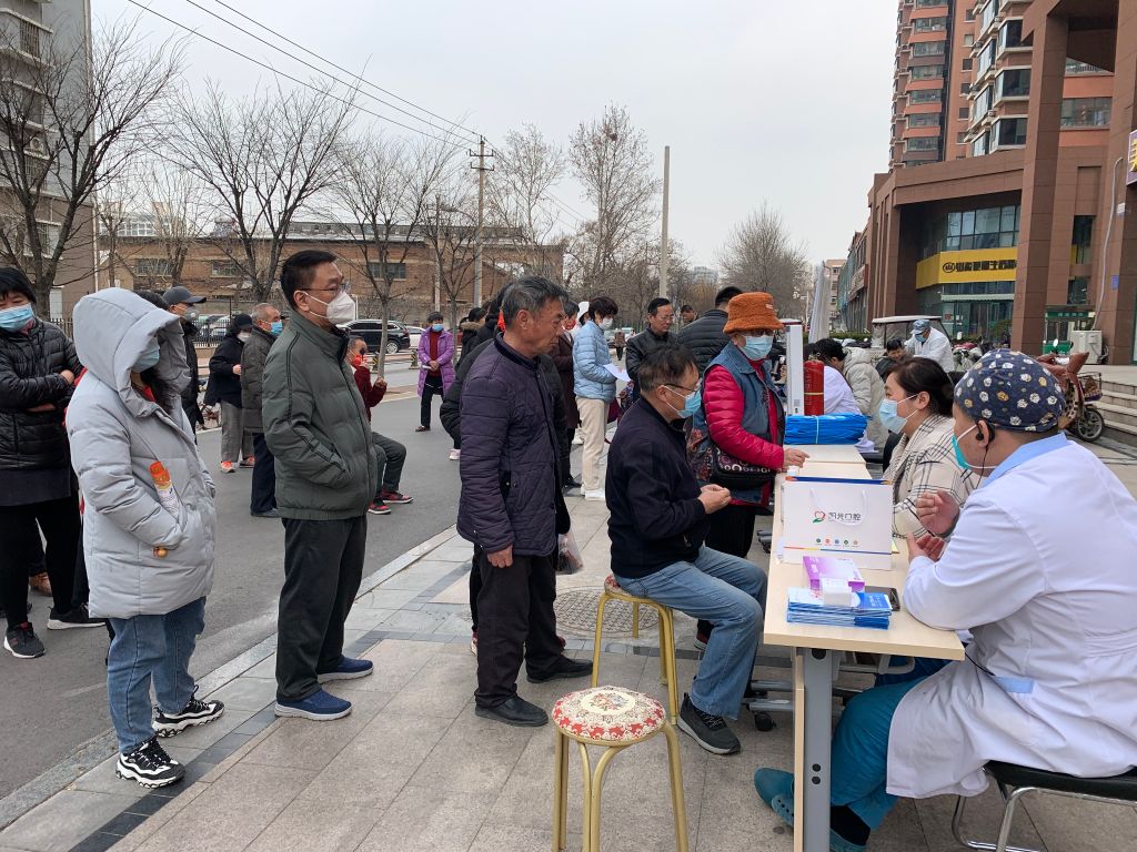 活动开始前,社工早早来到社区,一边帮助搬桌椅、布置场地,一边引导陆续到达现场的居民有序排队,现场分为义诊、义剪两个区域。