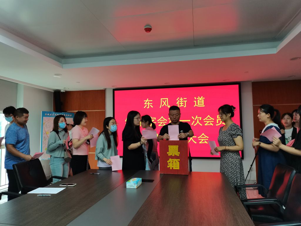 大会首先由吴静同志宣读了东风街道红十字会第一次会员(代表)大会筹备情况,会议宣读了《关于成立东风街道红十字会的批复》《东风街道红十字会第一次会员(代表)大会选举办法》,根据选举投票结果,选举产生东风街道红十字会第一届会长朱永强,副会长吴静,秘书长马可。
