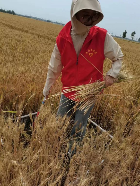 抢收现场,在董奶奶的下指导,社工们现学现收,镰刀翻飞间,因倒伏不能用收割机的麦子被大家一束束的迅速装进袋子并且帮助董奶奶通过地井打水浇菜园,田间呈现了一派热火朝天的景象。通过此次帮助农收真正的体会到了农民种粮的辛苦,谁知盘中餐粒粒皆辛苦,“感谢大家来帮我抢割麦子。不是你们帮忙我都不知道怎么办了”董奶奶激动地说。
