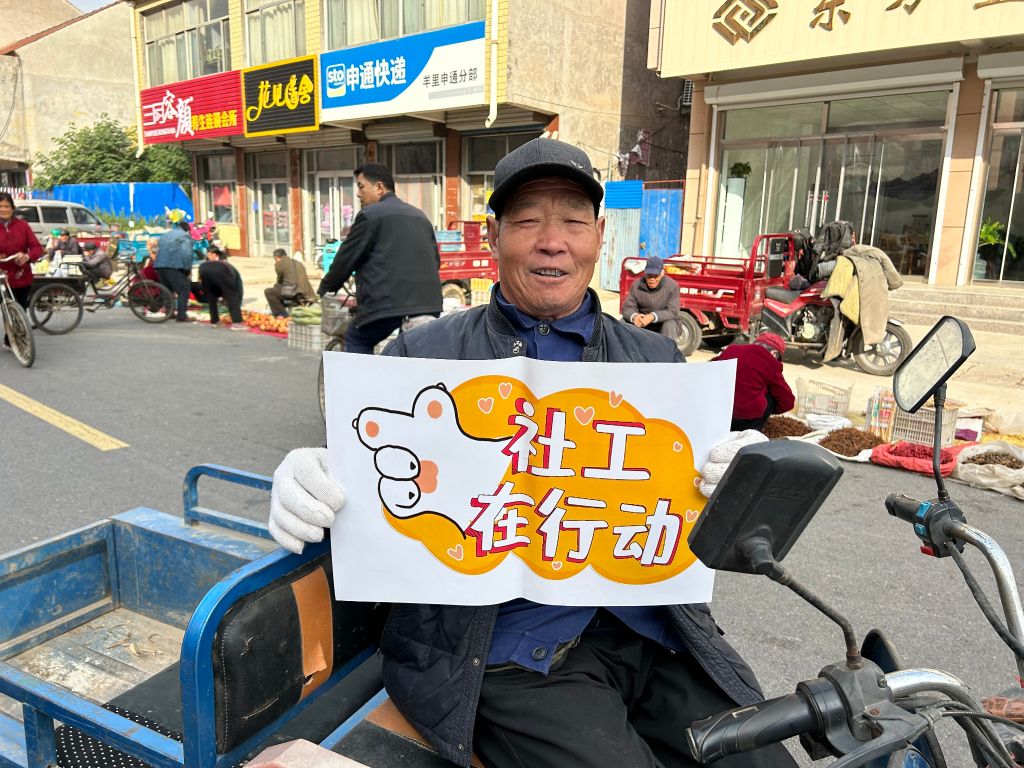 活动中,工作人员化身文明婚俗宣传员,穿梭在大集中,给现场群众发放婚俗改革倡议书,并用通俗易懂的言语与群众进行沟通交流,引导群众自觉抵制婚俗陋习,号召大家喜事新办、简办,优办。同时,在宣传活动中,工作人员向赶集的群众发放社工站宣传册,通过宣传标语合影的方式,了解社工站,鼓励群众践行移风易俗,传递健康婚俗,争做文明新风的倡导者和践行者。