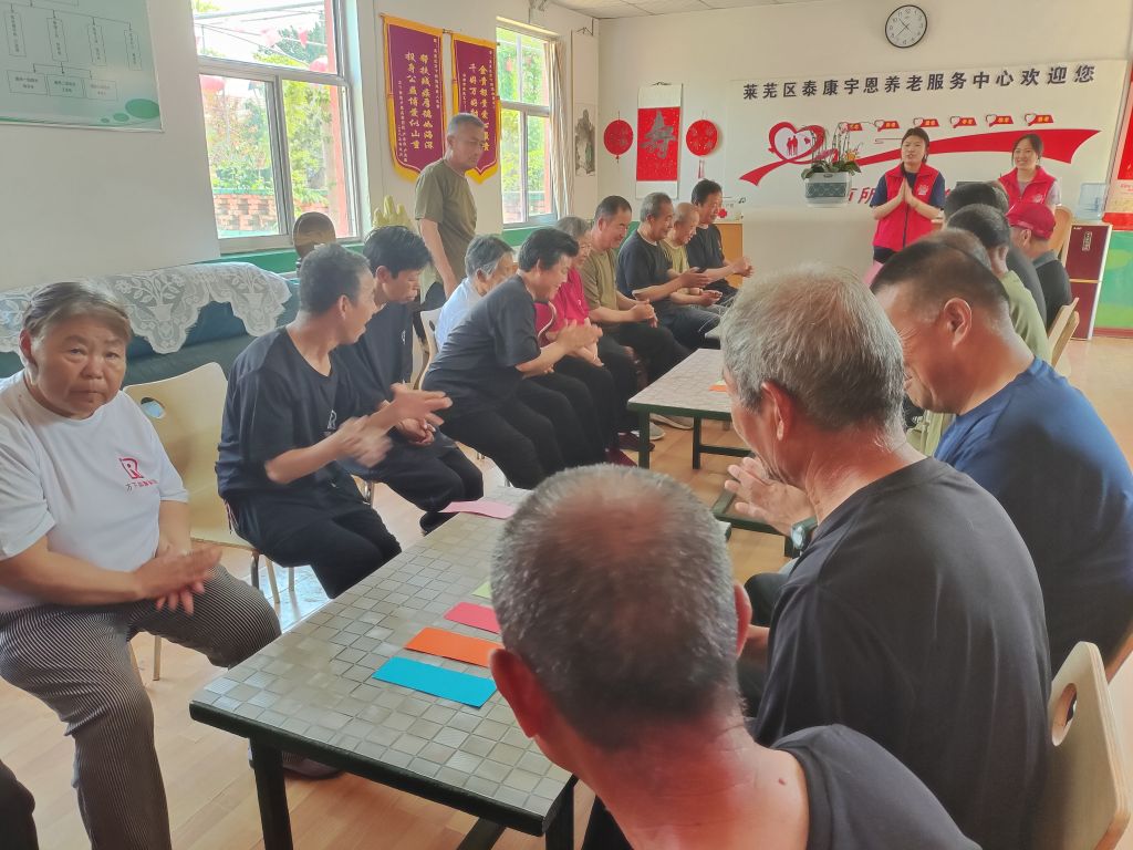 活动开始前组员们不怎么熟悉,每个人都不太爱交流,社工为了缓解大家的尴尬,开场先进行自我介绍。接着进行“抢纸条”的暖场小游戏,社工们为大家示范讲解游戏的规则及其注意事项,在社工的带领下,开展了一个组内小比赛并有奖励,有的老小孩们一听有奖励立马就兴致勃勃起来,都迫不及待地进入比赛状态。一声 “我赢咯~”的声音充满在这欢闹的房间里,赢了比赛的那位老人,脸上露出孩童一样开心的笑容,大家都纷纷给予他夸赞!暖场游戏在老小孩的一片欢声笑语中结束。