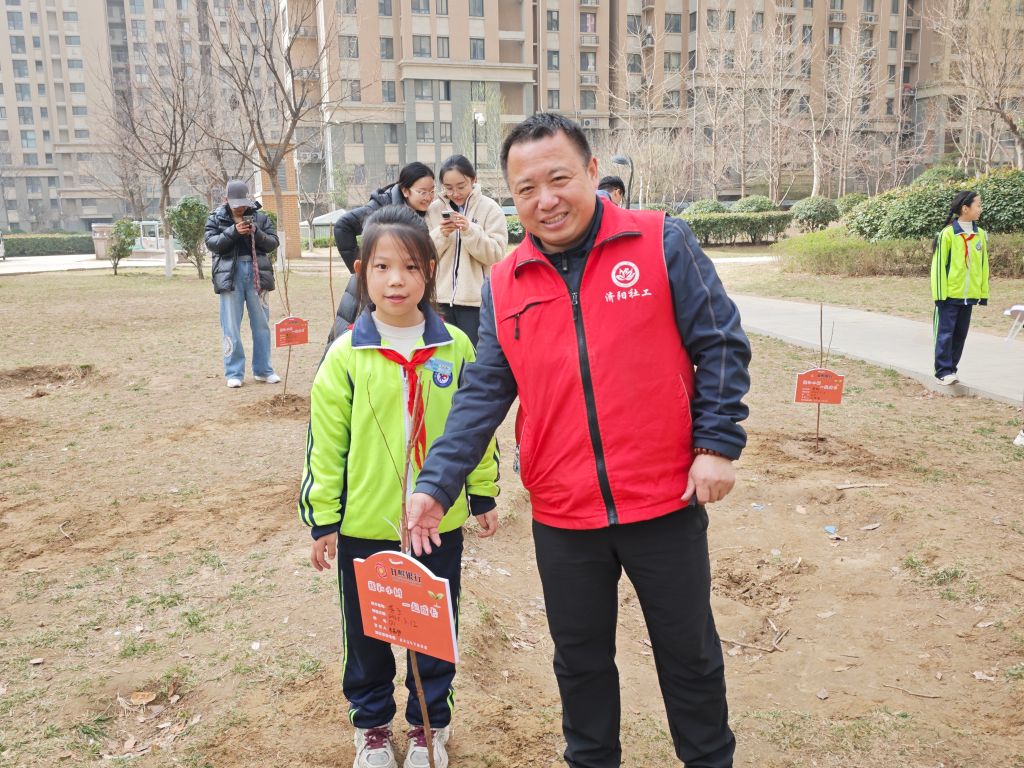春风和煦,绿意盈盈。伴随着3月12日植树节的脚步,济阳区济北街道社工站携手澄波社区、日照银行、玉鑫物业,在澄波湖壹号小区共同开展了一场以“认养一株绿 点亮一片春”为主题的植树节志愿服务活动。在活动中,社工站充分发挥了“五社联动”的协同效应,特邀日照银行作为活动资助方,同时动员了澄波湖学校的少先队志愿者和热心的居民志愿者等30余人共同参与。