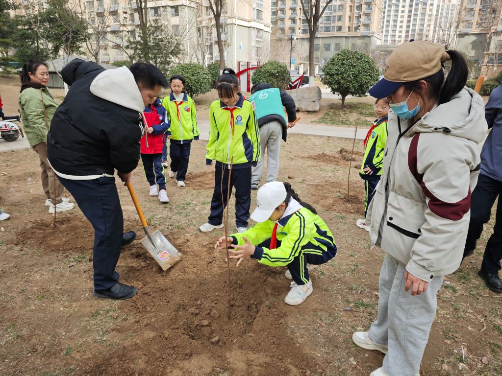 活动现场洋溢着热情与活力,在社工及社区工作人员的精心组织下,志愿者们各司其职,分工明确。大家纷纷抄起铁锹、拿起水桶,投身于植树造绿的活动中。挖坑、扶苗、填土、浇水,每一个步骤都做得一丝不苟,每一双手都倾注了对小树苗的爱护,经过一番辛勤劳动,一棵棵小树苗在春风中昂首挺立,为小区注入了勃勃的生机与活力。