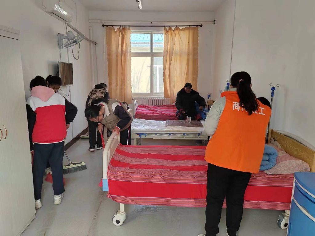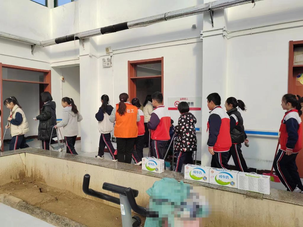 社工和孩子们一起为老人们铺床单、扫地、擦桌子,一声声清脆的爷爷奶奶叫的老人们心里那叫“滋”啊!看着孩子们累的红彤彤的小脸,老人脸上的每条皱纹都洋溢着幸福的微笑,那被岁月摧折的脊背也不由自主的挺了起来。刘大爷颤抖着拉着社工小李的手高兴地说:“闺女,谢谢你们!你跟孩子给我们带来了生机,带来了生活的希望;感谢党对我们的关怀,有你们真好。”