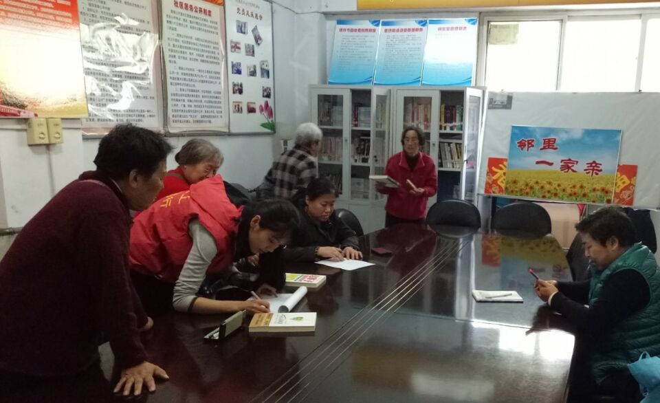 在"世界阅读日"既将到来之际,在全社区倡导多读书、读好书的文明风尚,形成全民阅读的良好氛围,共同营建书香社区,2017年4月21日上午,舜承苑社区书香满“苑”朗读活动正在进行。