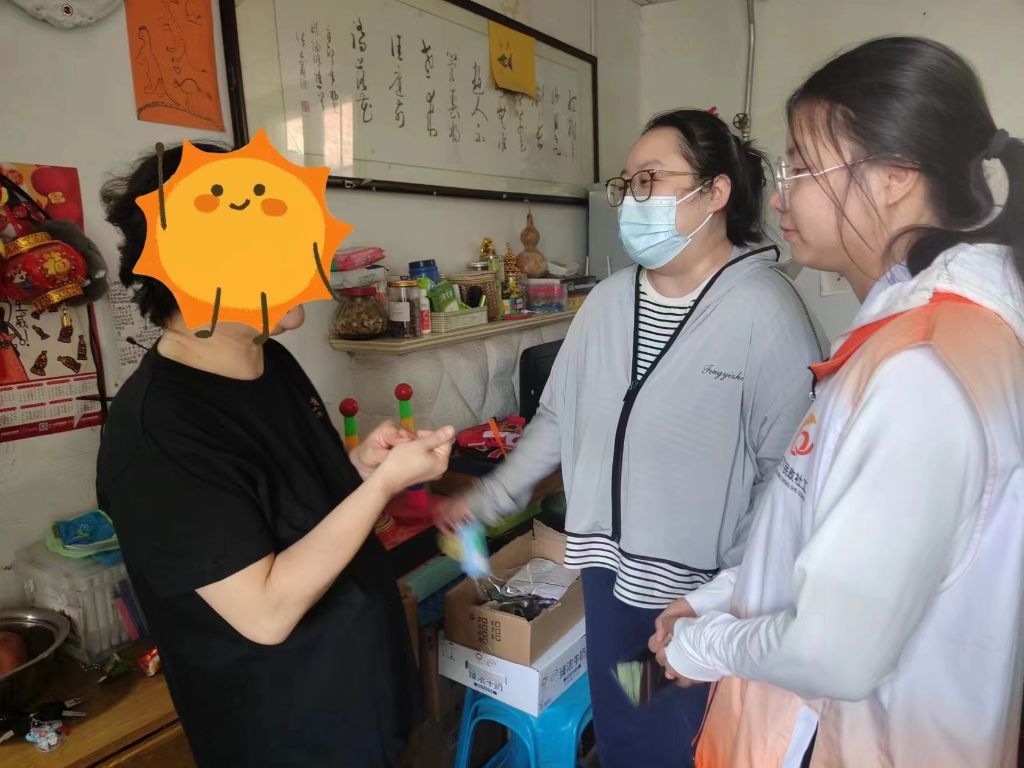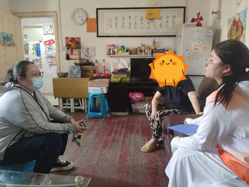 6月20日,社工在与李姐所居社区的网格员了解相关信息之后,便入户探访李姐,李姐对社工的到来感到十分高兴,连忙客气的请社工坐下。进屋后,社工首先向李姐表达了慰问之情并送上慰问物资,耐心地询问其近期生活现状以及家庭相关信息。李姐表示,目前家里除了低保和残疾人补贴外,自己对象每个月工作有工资,自己则每天都在家里照顾大儿子,还有接送小儿子上学,没时间出去工作,家里的经济压力尚可,勉强能保持家庭生活。在交流过程中,社工以倾听为主,运用共情、专注等专业技巧,引导李姐表达自己家庭的状况与自身的心理感受,促使她缓解内心积压的情绪,同时社工也对李姐乐观的心态表示肯定与鼓励,希望其继续保持积极向上的心态面对生活。