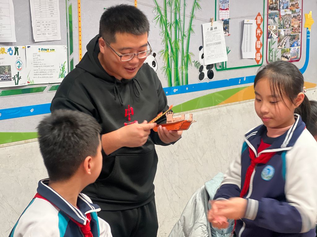 随后,社工向学生们说明了“红船”模型的结构和制作的方法,并为大家发放了红船模型材料。虽然都是第一次制作模型,但是他们完全没有丝毫畏难情绪,而是十分认真,小心翼翼地组装着每一个部件。社工指导和帮助大家一步步完成了红船模型,结合新时代背景,感悟“红船精神”。