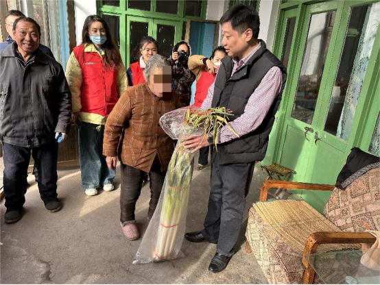 对于不方便来大院领葱的群众,社工抱着大葱来到村民家中。当把大葱送到村民手中时,他们紧紧拉着我们的手不放,连声表示感谢。他们感动地说:“谢谢你们惦记着我,把我们的困难和需求记在心上,现在还将过冬的大葱给送到家里来!”每到一户,社工都会仔细了解困难家庭及独居老人的生活状况,同时叮嘱他们要保重身体。