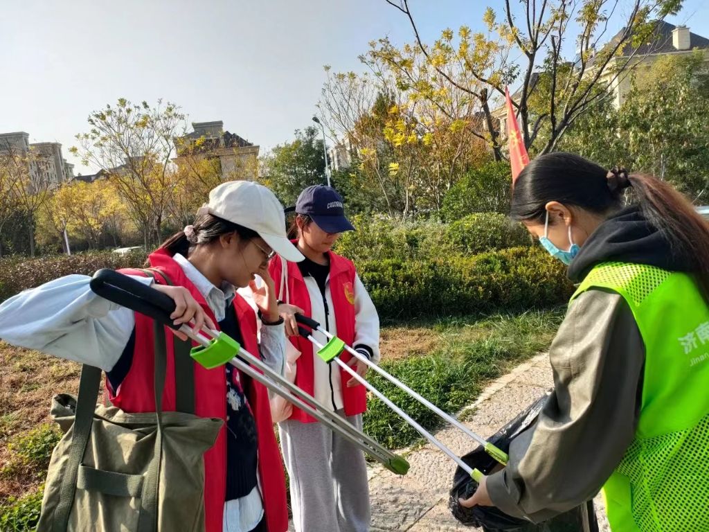 10月23日,唐冶街道社工站携手帝华鸿府社区、组织山东青年政治学院会计学院青年志愿者、社区居民志愿者一起进行“登高赏秋色,环保随身行”志愿服务活动。