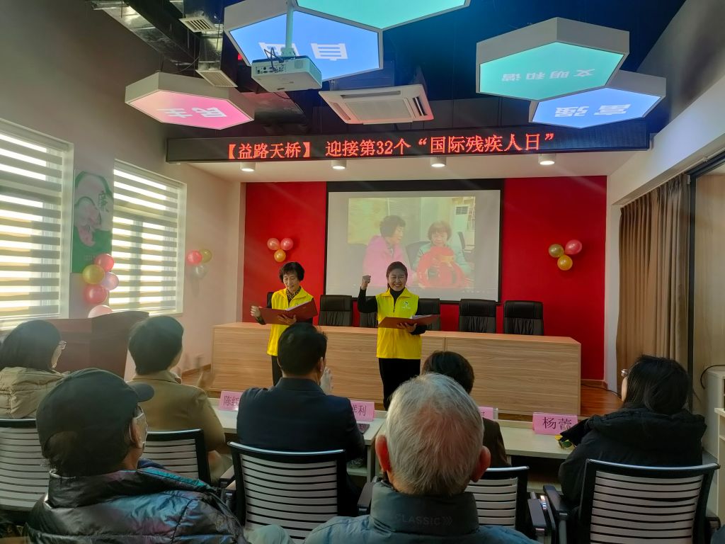 在国际残疾人日即将到来之际,为了进一步倡导社会各界关注残疾人的需求和权益,提升残疾人融入社区、参加志愿服务的效能感。11月29日上午,济南市天桥区制锦市街道社工站联合启盛街社区、社区社会组织共同开展关爱残疾人暨表彰先进会活动。山东省残疾人联合会直属机关党委专职副书记陈红光,山东省残疾人联合会人事部一级主任科员刘俊,天桥区残疾人联合会党组书记、理事长惠祥利,天桥区残疾人联合会党组成员、四级调研员聂岭,制锦市街道办事处副主任温辉,启盛社区党委书记米玉,济南市“快乐一家”社会组织服务中心主任杨蕾,“爱之翼”兰英助残工作室主任石兰英等领导同志出席会议。