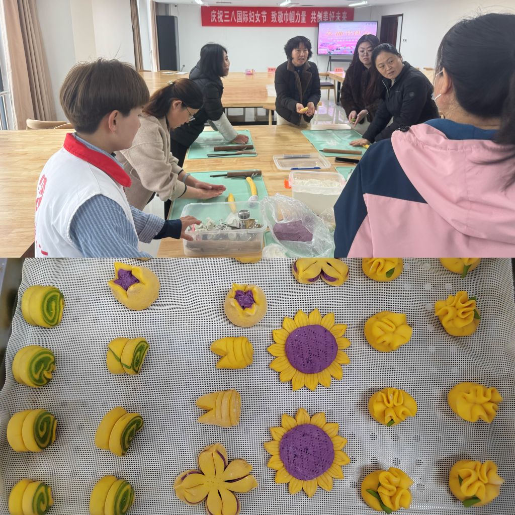 进入花样面食制作环节,社工们更是忙得不亦乐乎。他们提前准备好面粉、馅料等各种食材和制作工具,将活动场地布置得井井有条。在制作过程中,社工们不仅协助参与者完成面食制作,还鼓励大家相互交流、分享经验,现场洋溢着浓浓的生活气息和温暖情谊。这一环节不仅让女性职工们感受到动手制作的乐趣,更通过社工的引导,促进了邻里之间的互动与情感交流。