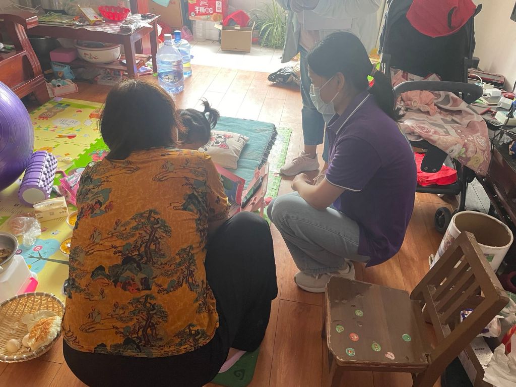 残疾儿童玉玉(化名)是社工站的一名服务对象,社工多次入户走访了解玉玉家庭情况。玉玉的姥姥自她出生以来一直照护玉玉的饮食起居,陪同玉玉做日常康复训练。社工每次入户都耐心倾听玉玉姥姥倾诉家事,帮助其宣泄不良情绪,缓解其精神压力提供心理支持;为玉玉链接居家照护服务缓解姥姥的照护压力;链接志愿者上门陪伴玉玉、教授玉玉学龄前文化知识为照护者提供社会网络支持。