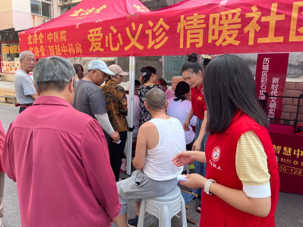 弘扬岐黄文化,传承国粹经典。8月2日彩石街道社工站联合宏济堂智慧中药房开展义诊活动,旨在向广大群众宣传中医适宜技术、展示中医药文化,传播中医药科学养生保健知识,提高群众健康意识。