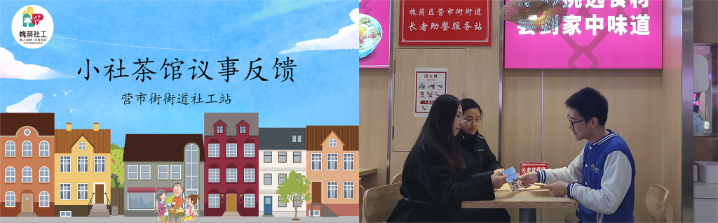 扩宽社区参与渠道,降低参与门槛,是营市街街道社工站“小社茶馆”社区非正式议事平台创立的初衷。年前,社工开展了多次以长者助餐为主题的“小社茶馆”社区议事活动,最后收集了许多社区居民对于长者助餐的看法和建议。借助此次营市街街道长者助餐服务站顺利开展的机会,社工将群众的看法和建议进一步传达。社工制成居民意见反馈卡,随后转交给社区书记、街道主任和人大代表,反映老人用餐时面临的困境,表达居民对长者助餐服务站的助餐菜品、助餐价格和助餐形式的看法。小社茶馆议事成果的整理反馈,一方面是为用餐困难的老人发声,提升居民社会参与感和社会参与能力;另一方面是收集群众反映和看法,为政府集民意、汇民智、聚民心起到辅助作用。