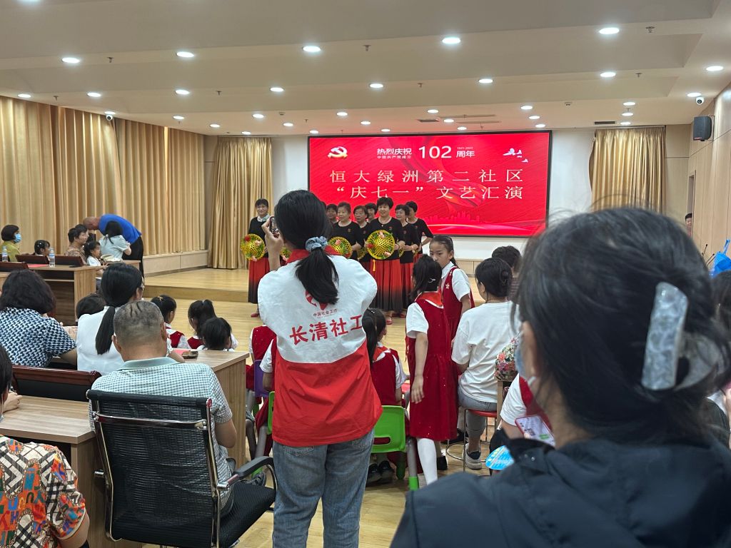 为庆祝中国共产党成立102周年,弘扬光荣传统,赓续红色血脉,践行习近平新时代中国特色主义思想,加强五社联动,文昌街道社工站联合恒大绿洲第二社区开展“红心献礼 凝心聚力”七一主题活动。