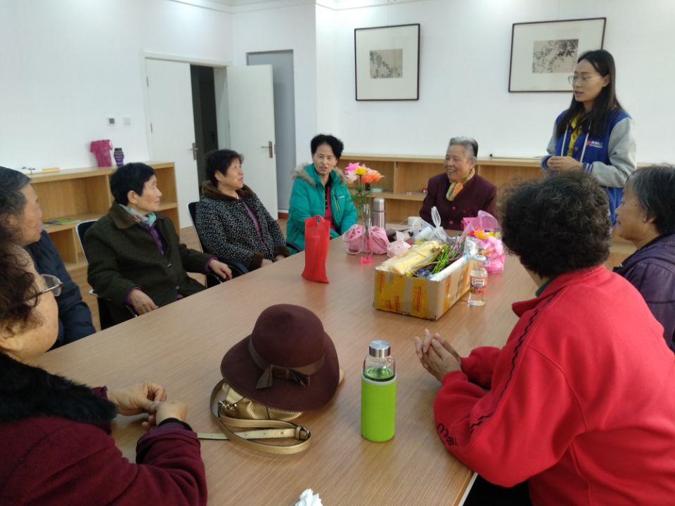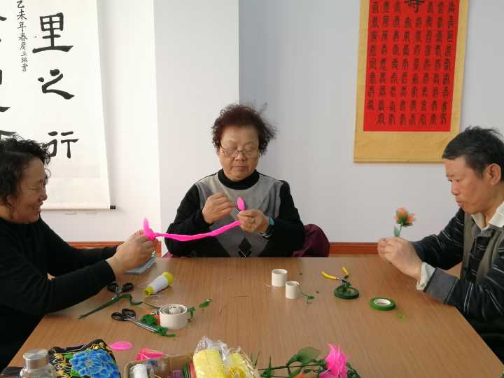 2019年3月21日上午,第二节丝网花手工教学在社区活动室开展了,本次共有九名老年人参加,在上节课花朵制作的的基础上,本次学习花叶的制作。