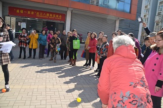 3月8日,"银龄伙伴"项目组携手社区居委会为居民带来了一场别开生面的三八趣味运动会,社区居民齐聚一堂参加活动,享受了一场健康与快乐的盛宴。上午9:30,趣味运动会在欢乐的气氛中开始,共设有旱地保龄球、踢毽子、投球比赛、套圈等八个比赛项目,各项比赛都扣人心弦,趣味盎然,精彩场面随处可见。比赛项目突出了趣味性,让参赛者“玩”得开心,观众们看得开心。运动会现场加油声此起彼伏,不少居民通过相互协作,共同完成各项比赛任务。