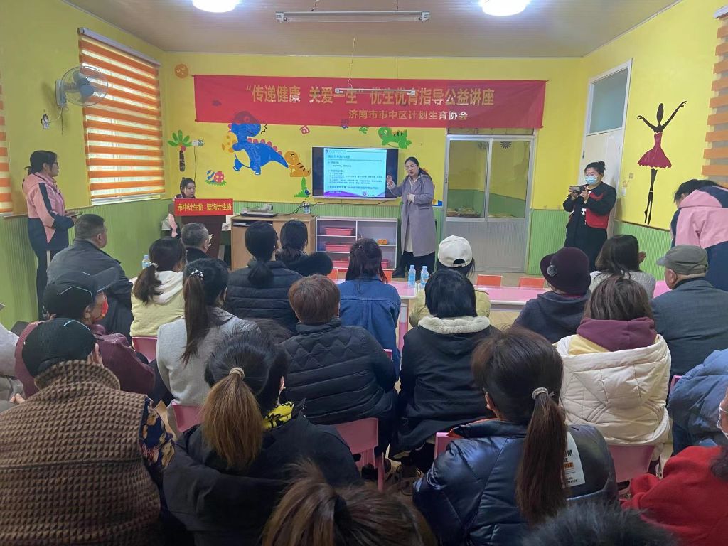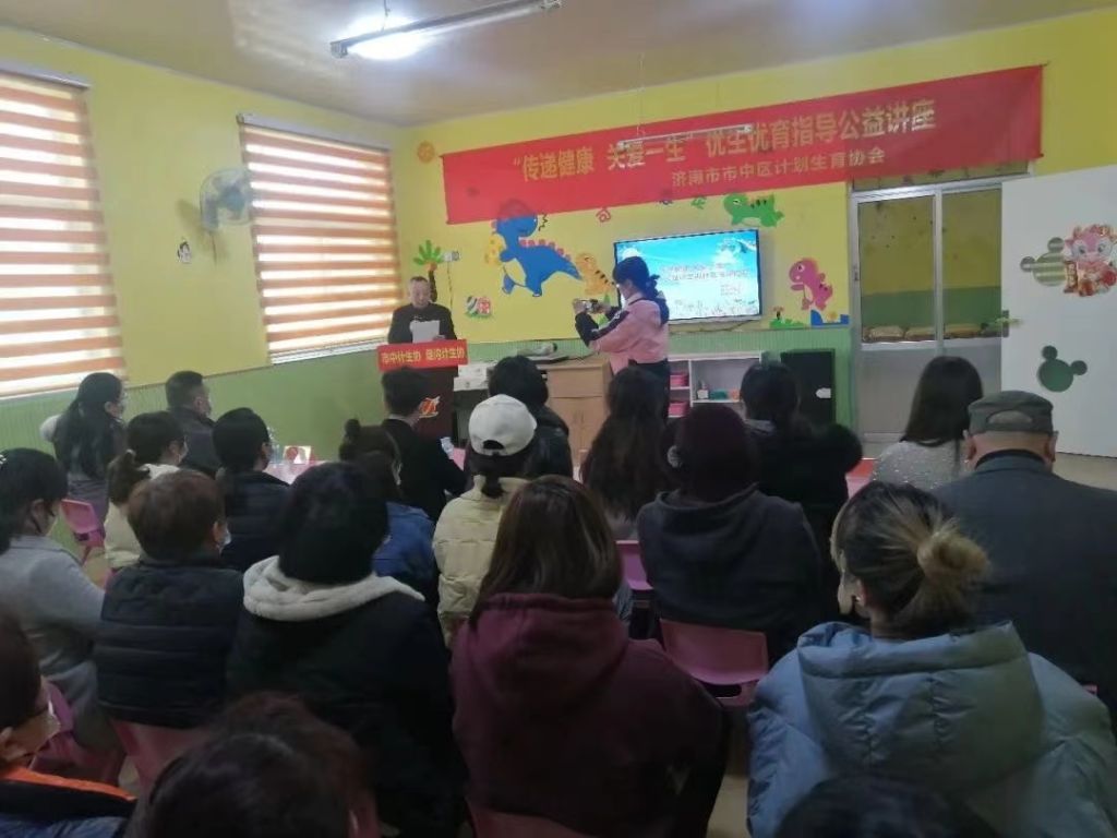 讲座中,济南妇幼保健院主治医师、儿童康复中心医师组组长王庆美,济南市妇幼保健院儿童康复中心特教教师郭龙先后通过PPT图文并茂地讲解了儿童身高体重健康管理、意外伤害防护及孤独症的相关知识,并从科学、健康生活的角度来解释生育健康的重要性,提高了大家对优生优育知识的知晓率。