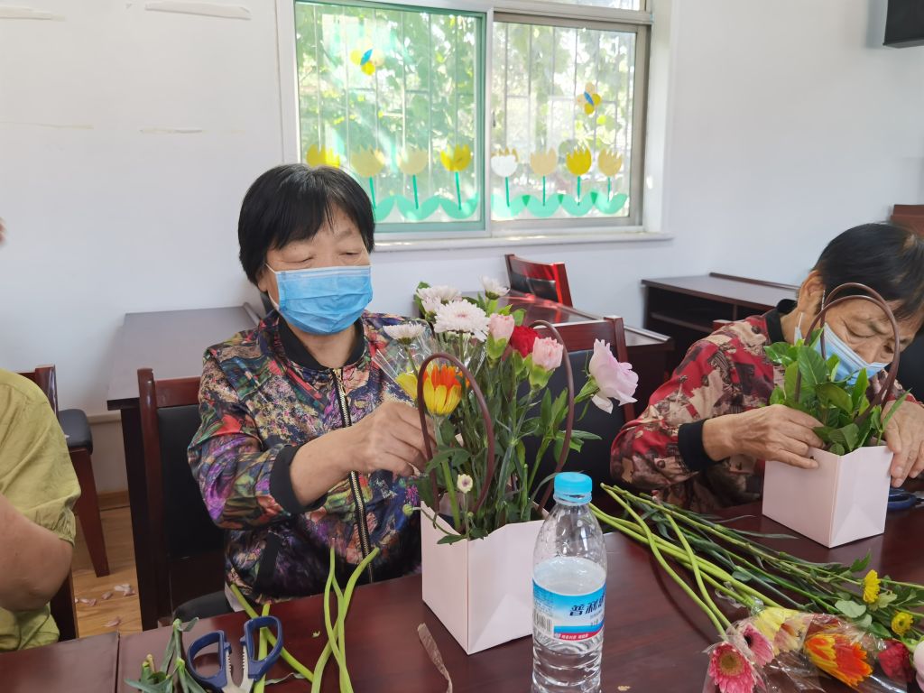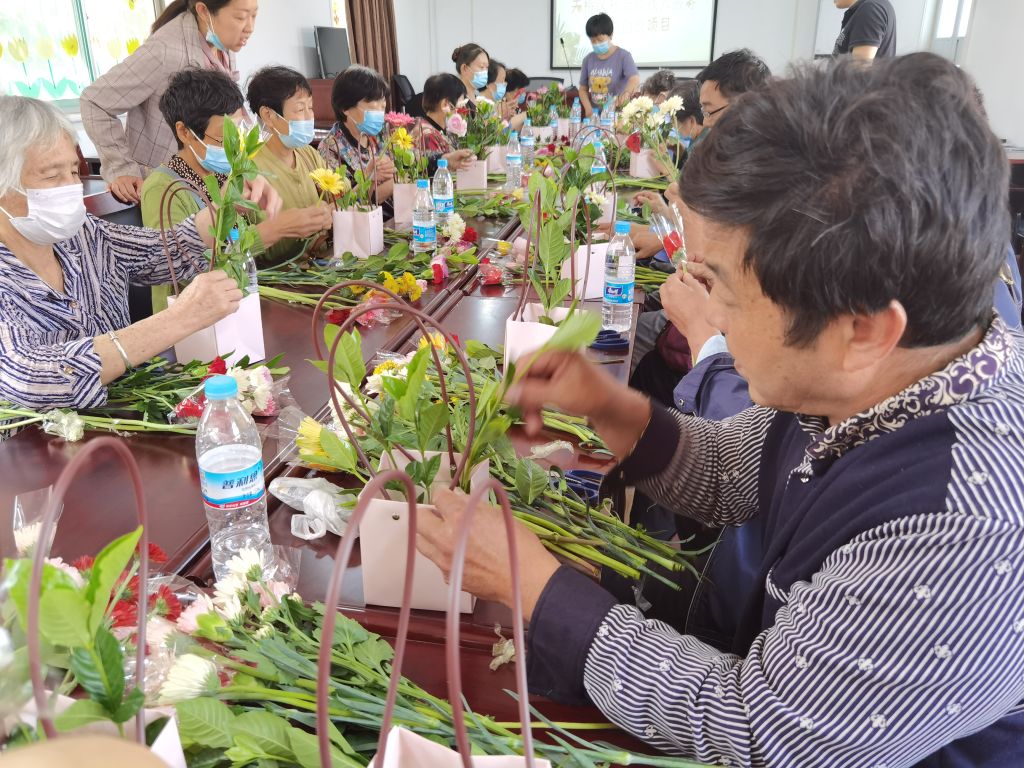 天桥东街社工站组织开展“以花会友,香满社区”残疾人插花活动