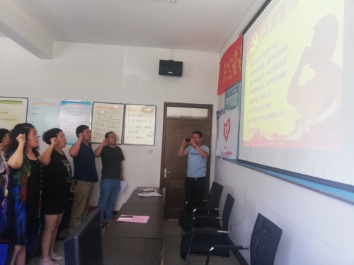 会议一开始,社区新购买的群益社会组织服务孵化中心的“红庙大姐”志愿服务社区党建服务项目的社工进行了自我介绍,并对志愿者服务队成立的意义及后续服务队将怎样开展活动进行了说明。随后,社区支部委员孙克同志对服务队的成立进行了简要的致辞并带领社区党员重温入党誓词,牢记党员使命。最后,大家面对“红庙大姐”党员志愿者服务队旗帜宣读了党员志愿者誓词。