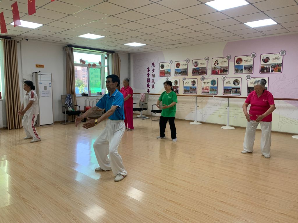 “元气满满”健身气功队操练中