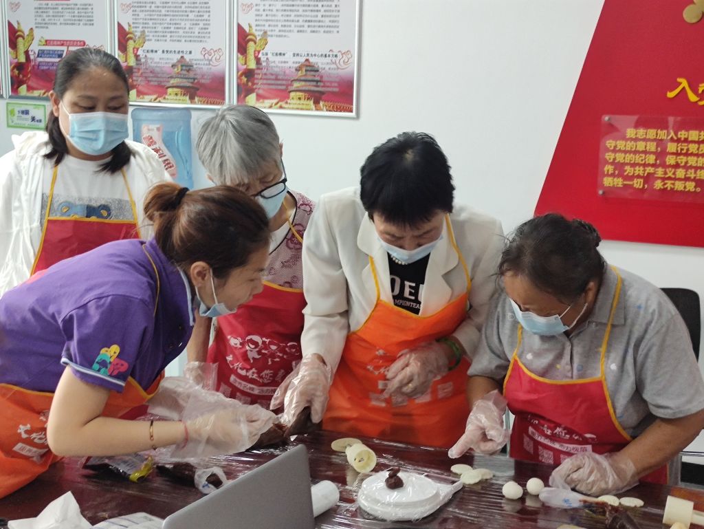 志愿者领袖协助社工按照和面、称重、包馅、包装的流程对志愿者进行有条不紊的分工。志愿者们互相配合,彰显团结互助精神,不一会一个个精致可爱的冰皮月饼就制作成功。月饼事小,情谊深重,中秋佳节,情深绵长。