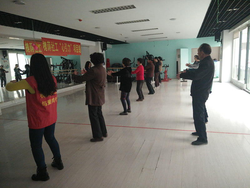 槐荫社工“心引力”项目组在进一步梳理“健康一家园”健康社区打造计划的过程中将居民健康锻炼与运动纳入到“健而康”版块中,迎合居民的体育锻炼方面的需求,社工通过发掘社区资源,发挥志愿者作用,链接专业太极拳教学志愿者一名,于2016年4月5日下午开展“拳心拳力”太极拳小组。