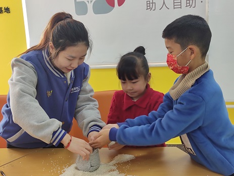 在活动中社工带领青少年以分工合作的方式制作沙包、团体战斗“丢沙包”、单打独斗“跳房子”等个人与集体融合的形式进行活动。让青少年感受分工合作更高效的完成任务,感受团体协作的意义,以智取胜在游戏中提升自己的动手动脑能力,体验游戏与运动带来的双重魅力。