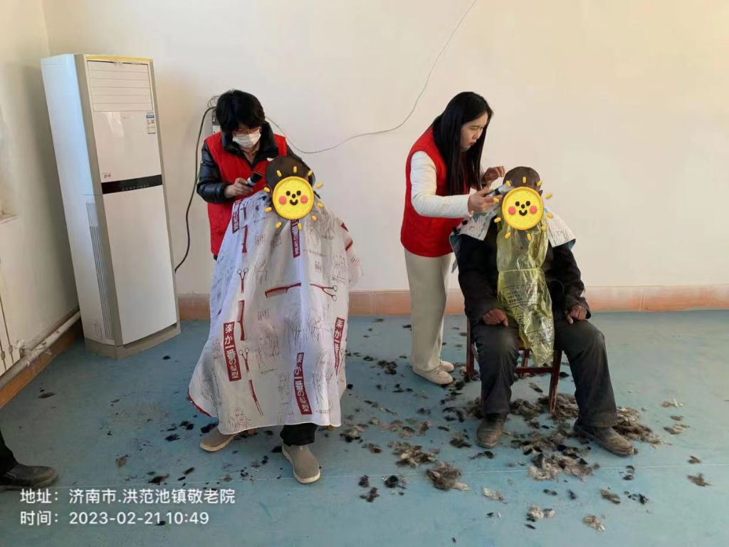 2月21日,“义剪志愿服务队”来到了洪范池镇敬老院,先向徐院长了解了老年人、残疾人的一些基本情况,理发师详细询问老年人、残疾人的需求,并按照各自的期望进行“私人订制”,贴心的为老年人、残疾人围好围布,在理发过程中,社工人员也熟络地和老年人、残疾人聊着家常,不一会,老年人原本凌乱的头发变得干净、整齐、利落,老年人、残疾人也纷纷为理发师竖起了大拇指。