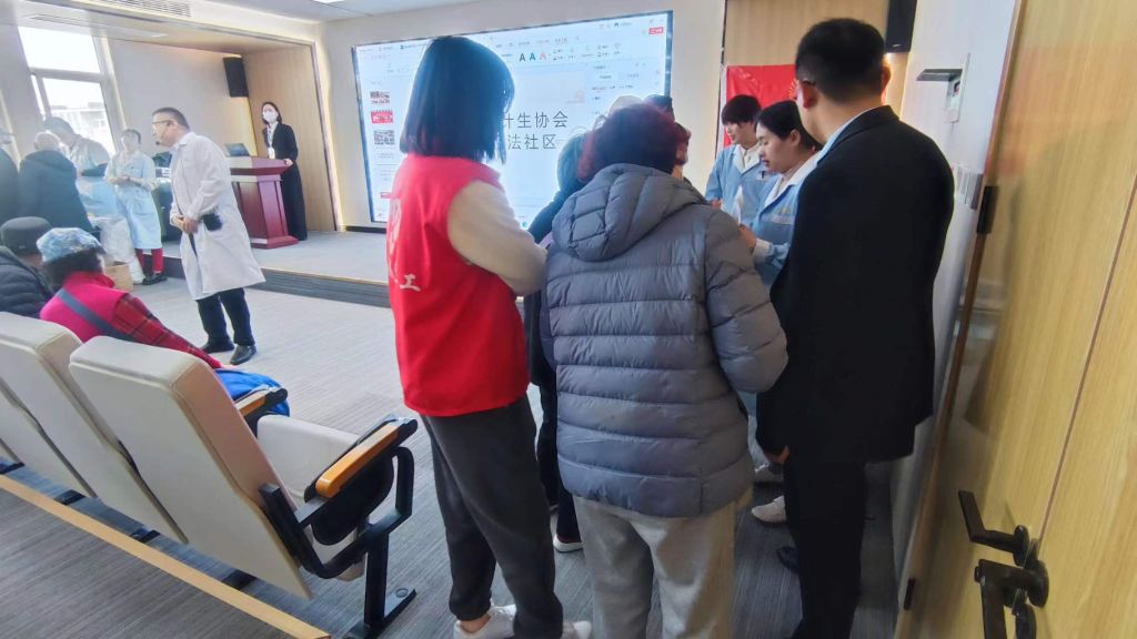 讲座结束后,社工引导居民有序排队,由正煌中医医生为社区居民测量血压、血糖、骨密度等项目,并详细询问每位居民身体状况,为居民们排查自身存在疾病隐患。社工对居民提出的问题,耐心解答,讲解合理饮食建议、予以普及保健指导知识,并把需要进一步接受治疗的居民情况以及联系方式记录下来。一位奶奶说:“我不敢自己测血糖,这挺好的,以后多开几次。”