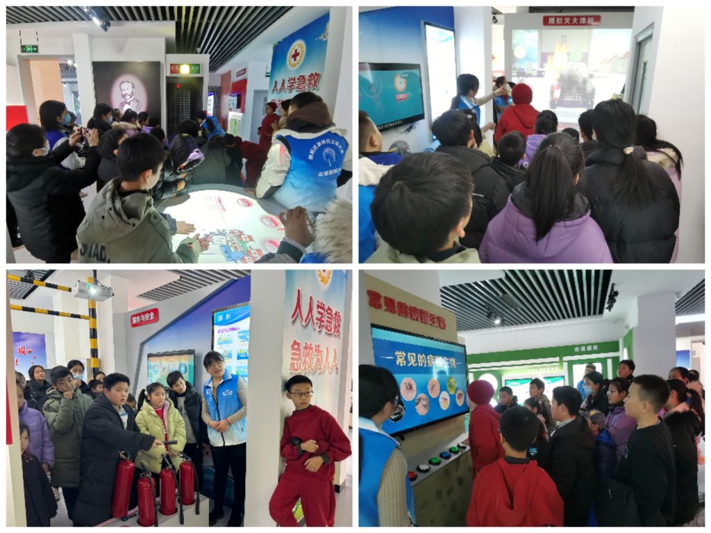 南辛庄街道济微路健康教育基地占地面积700余平方米,集红十字博爱家园、健康教育科普馆、病媒生物与传染病等内容为一体,是济南市第一家互动体验式教育基地。本次南辛庄街道社工站组织冬令营组员集体参观学习健康教育基地,目的是让组员们对健康知识有直观、深层次的认知。基地现场各展区中以文字、图片、视频等不同形式呈现,工作人员向组员们介绍包括红十字、心肺复苏、急救知识、消防安全、慢病与传染病防治、运动健康、科学饮食等健康知识并互动回答孩子们提出的问题,而参与活动的组员们则认真听讲,学习相关知识与技巧。在AR场景模拟区域,组员们现场积极参与、互动体验、3D实物关联等生动有趣的载体形式,利用科技“微”IP赋能,深层次的科普自救互救技能和健康养生知识,为组员们开启了一段前所未有的生命健康教育之旅。