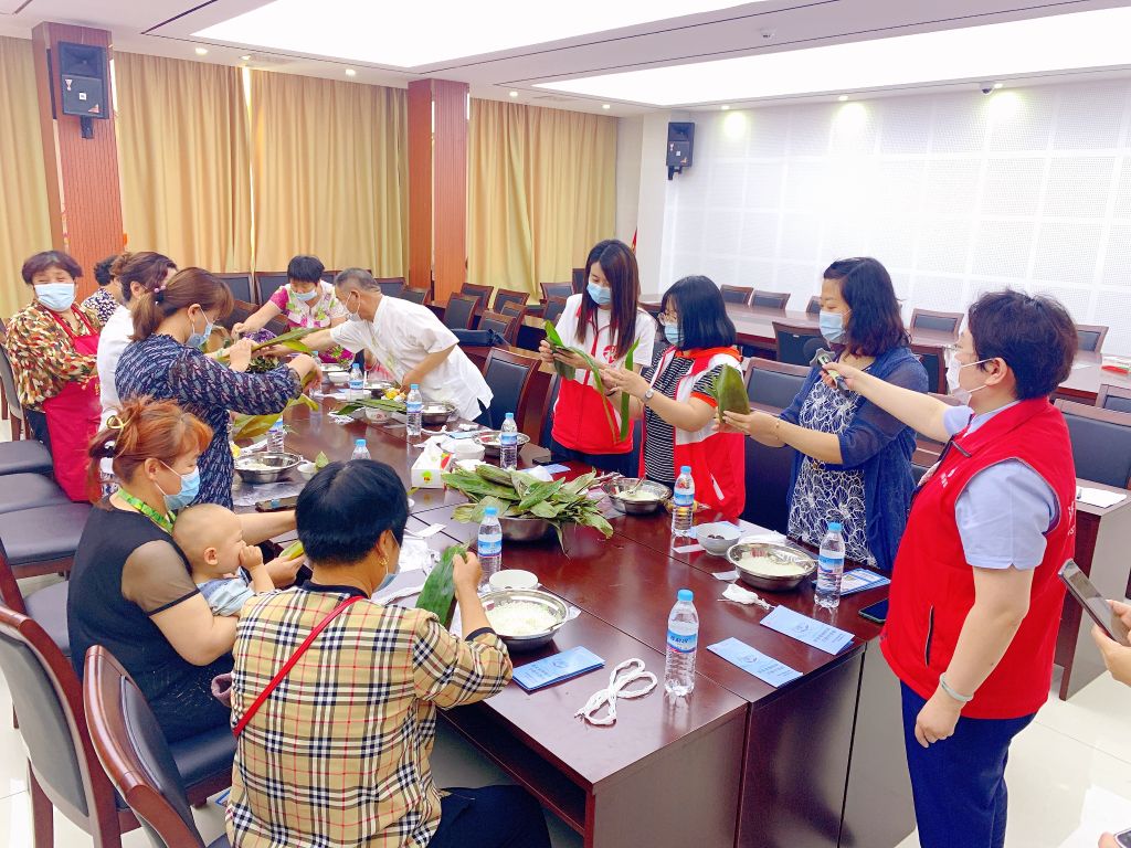 社工同农商行工作人员以及志愿者一起为老人包粽子