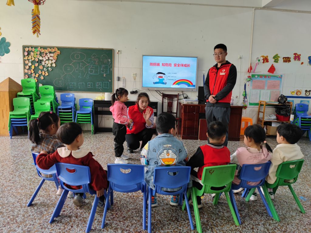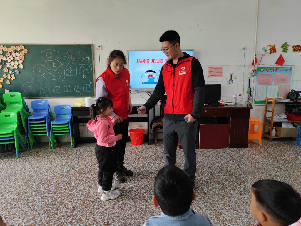 活动伊始,社工带领儿童一同回顾上节所学知识,并介绍本节课程主题——防拐骗,以及内容与流程。首先,志愿者利用PPT、视频等课件,向儿童介绍常见的骗术以及如何防止被骗的方法。教育儿童不要跟陌生人谈论家里的事情,不要随便跟陌生人走,不要随便吃陌生人的东西;放学或者外出时要尽量结伴而行,不要在路上逗留;遇到意外事情要及时与老师、父母取得联系,熟记求救电话号码,机智自救等有关防拐骗知识。其次,社工充当“坏人”,用不同的方式引诱拐骗儿童跟着自己走:如给儿童吃糖果、领儿童出去玩耍等,志愿者及其他社工、儿童等则不作任何语言提示,静观儿童的表现,检测和提高学生对防拐骗安全意识。最后,在演练中,绝大部分儿童遇到“坏人”后都能引起警觉,并断然拒绝“坏人”的“利诱”。