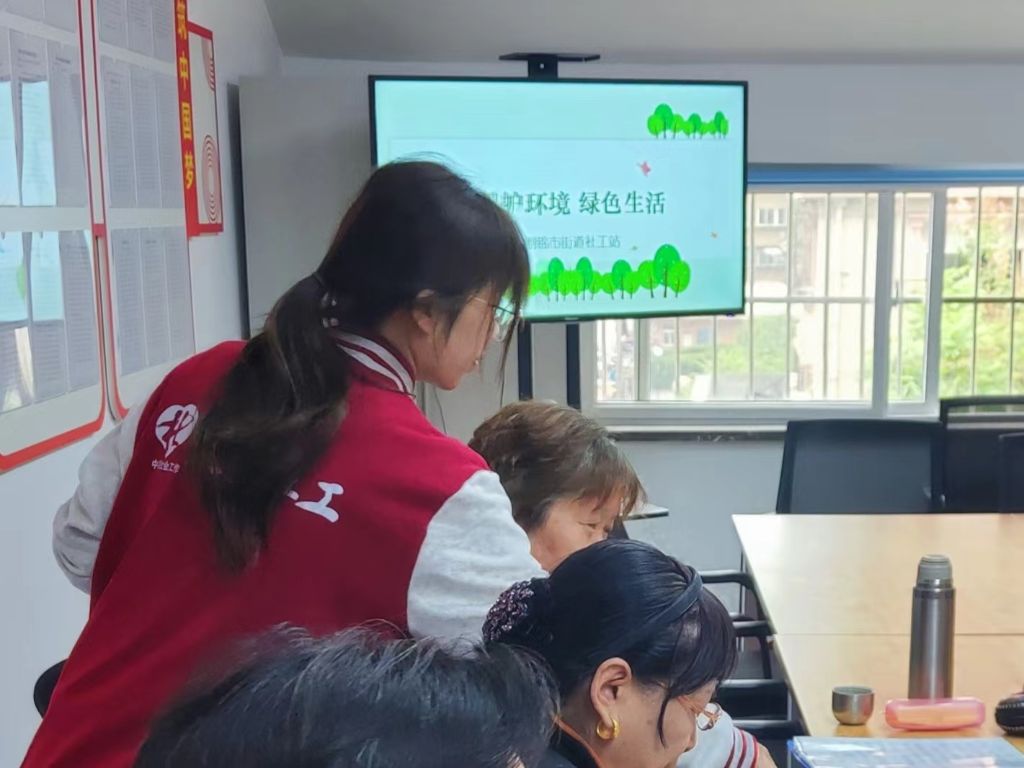 驻站社工通过面对面的方式利用宣传单页、环保知识手册等资料向现场居民宣传生活垃圾分类的重要意义,引导居民树立“尊重自然、顺应自然、保护自然”的生态文明理念。随后,社工借助科普小视频等多种形式耐心讲解垃圾分类的方法、分类后如何进行下一步处理等知识,指导大家正确分类生活垃圾,坚持从我做起、从现在做起、从身边的小事做起,逐步养成垃圾分类投放的好习惯。大家纷纷表示以后会积极实践低碳行动,不乱扔垃圾,共同维护绿色家园。